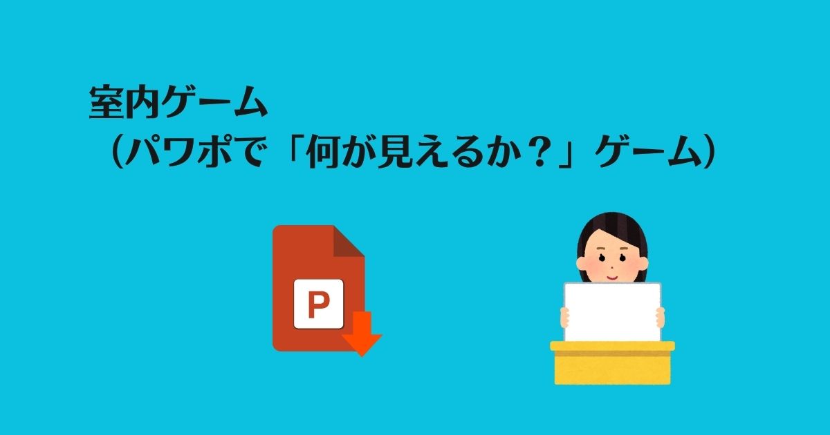 PowerPointで「何が見えたかを当てるゲーム」を作りました。スクリーンに表示させて、「わかった人?!」とみんなに当ててもらう系のゲームです。私が適当に考えて作ったものなので、もっとパソコンに詳しい方なら、もっといいものが作れると思います。難しいことはしていないので、ちょっとパソコン触れる人なら問題なく作れると思います。ちなみに、イースターのお楽しみ会のゲームでやったので、素材がイースター関連です💦