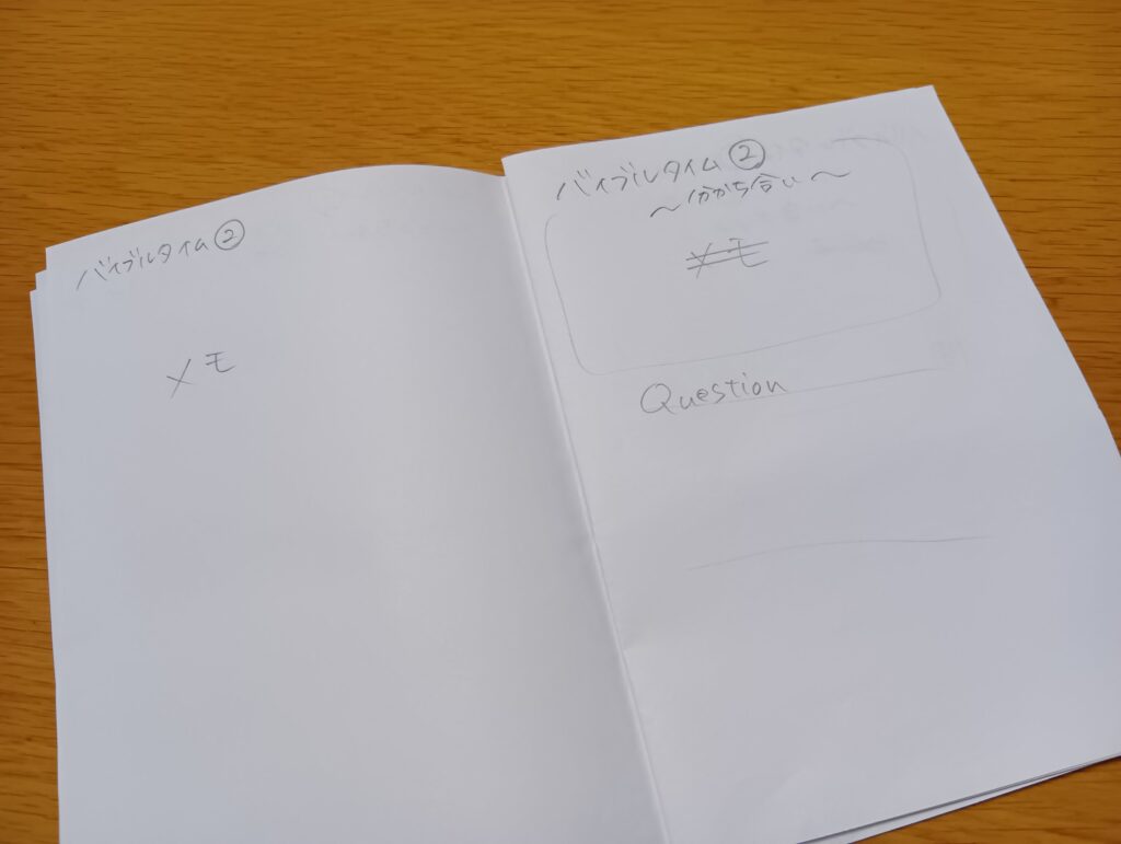 スタッフミーティングでしおりに入れる内容が増えたりするので、このような冊子を3つくらい作りました。消して書き直すのって、めんどくさいですから。なんかいい感じのアプリとか使える人は使ったらいいかと思いますが、私はそんな技術というか知識がないですし、完成はアナログなので、実際の大きさとかも感じられるので、私はこれが一番楽という結論です。