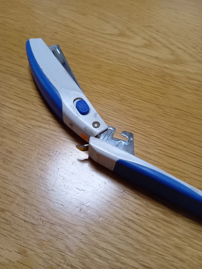 ホッチキスはこんな感じ↓で開くものであれば、どんなものでも出来ます。