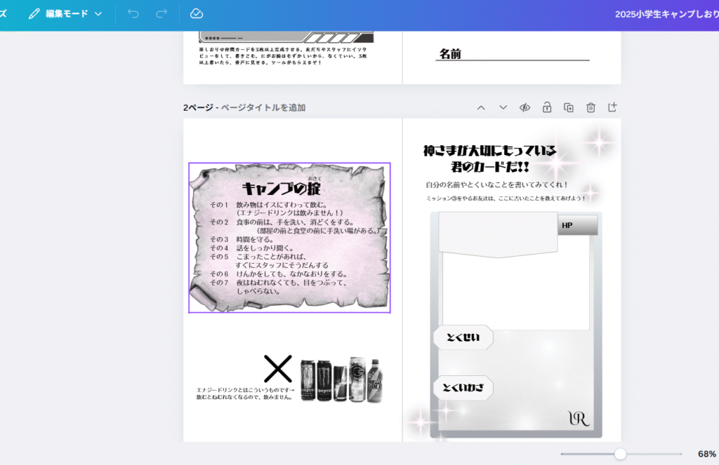 ②下書きの紙をばらばらにして、ページごとにパソコンで作っていく。(私はCanvaを使っています。)