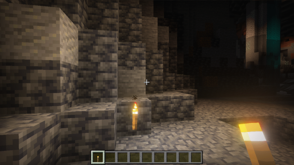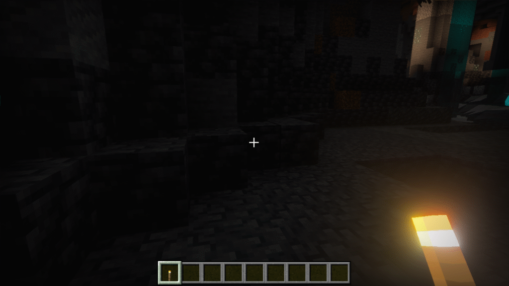 これはマイクラの洞窟の中です。暗さを実感できる↓